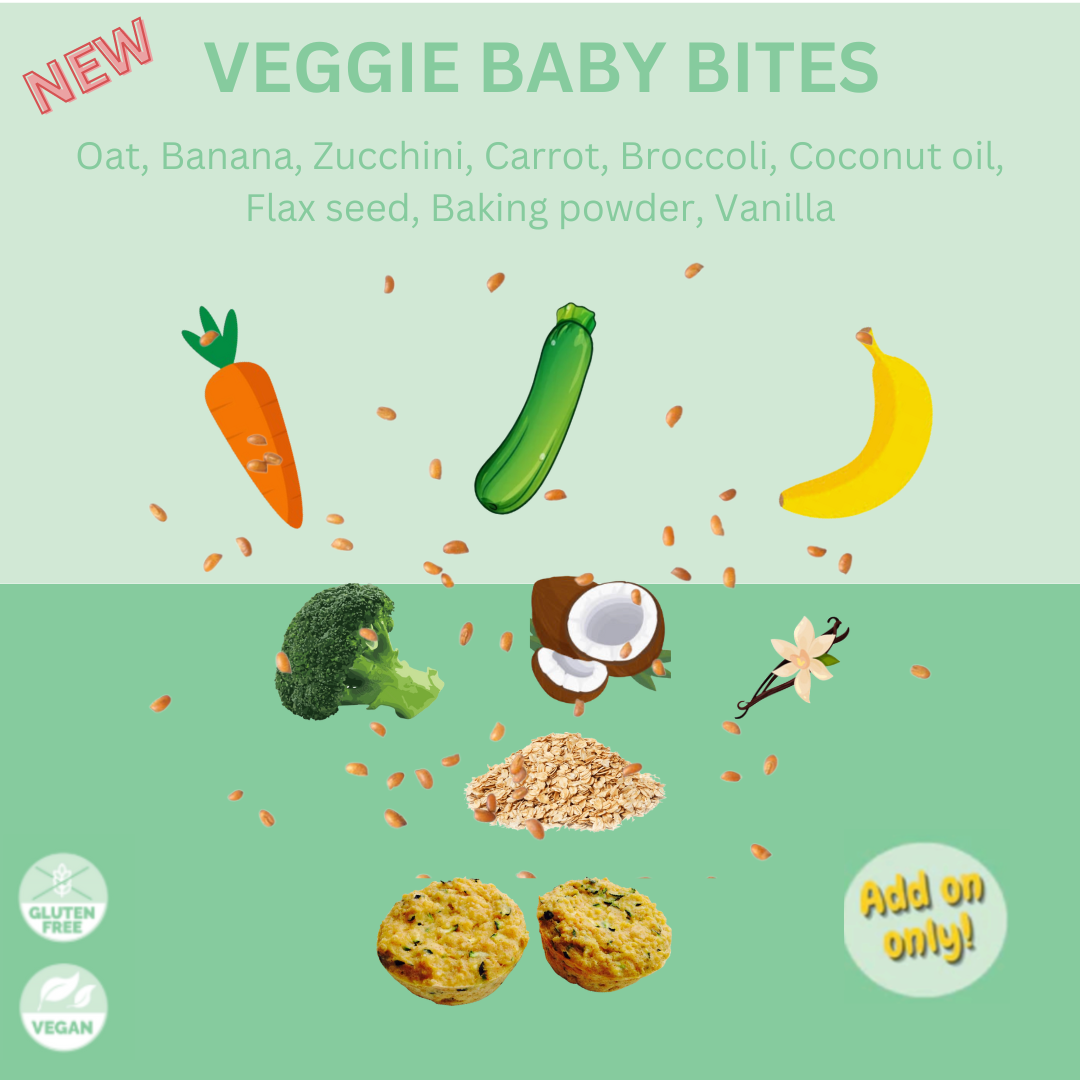We are very excited to introduce some new items to the Fragola menu… Baby Bites! Baby Bites are hand prepared, freshly baked, and SUPER healthy all in one snack! As expected from Fragola, no added sugars, salts, additives, or preservatives! They are soft with simple ingredients and geared for little ones… heck, they are good for mamas too! We keep them egg free, dairy free, and the Banana, Blueberry and Veggie flavours are also gluten free!